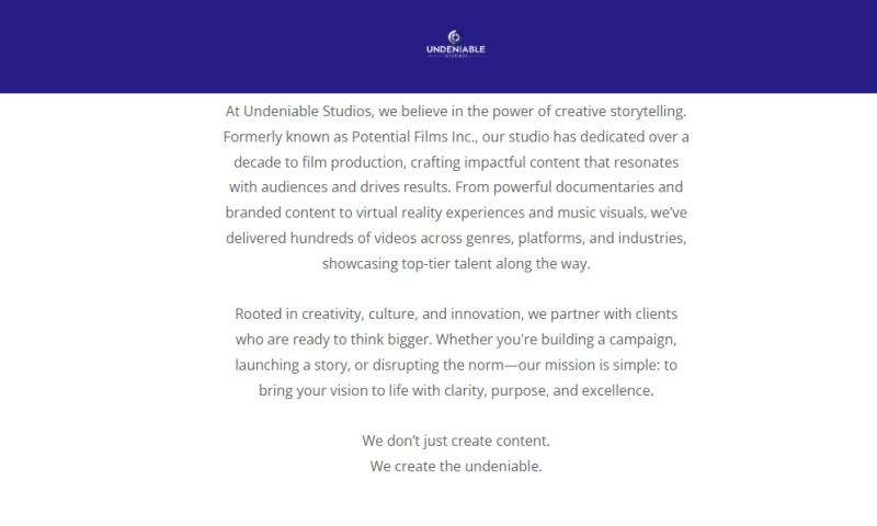 The Undeniable Studios is committed to providing top-quality services that help its clients