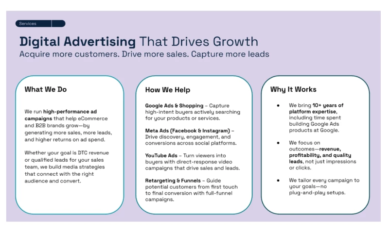 Founded by former Google Ads and brand marketing leads, we bring over a decade of experience helping brands scale with confidence.