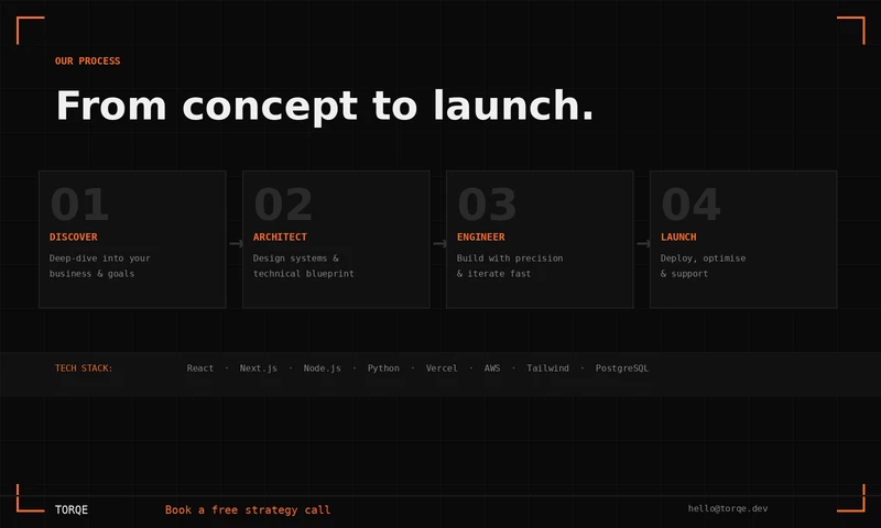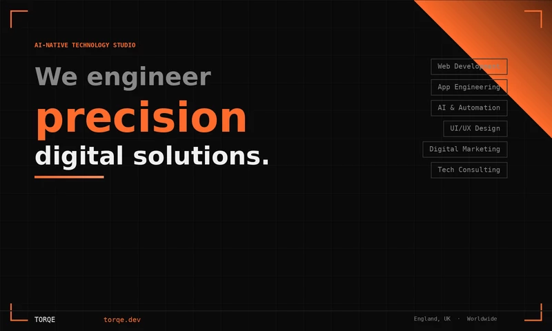 Based in England with a global delivery model, Torqe operates as a technology partner rather than a vendor. We embed with our clients, understand their business, and engineer solutions that grow with them. No fluff. No jargon. Just precision engineering with mechanical reliability.