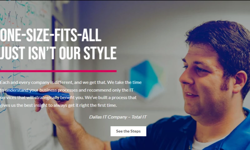 Total IT has been around since 2009. Since then, weve been working hard to provide top-quality IT solutions and services to businesses around the DFW area (and beyond). Our mission? Grow and nurture long-lasting relationships with our clients to help them succeed through the use of technology solutions.