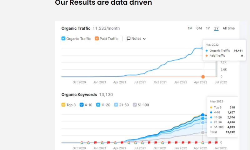 We have brought in millions of visitors to our client's websites, by ranking thousands of keywords on the first page of google purely through publishing high-quality content.Â