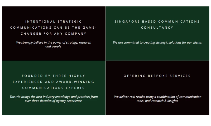 We are founded on the belief that strategic communications can be the game-changer for any company or individual, regardless of industry or location. The consultancy offers tailored communications services and special consultancy projects that are crucial in today's macroeconomic climate.Â