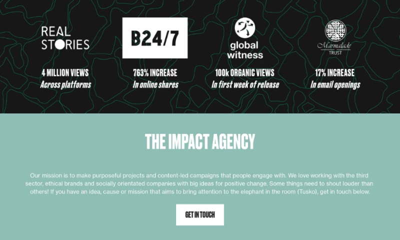 Our mission is to make purposeful projects and content-led campaigns that people engage with. We love working with the third sector, ethical brands and socially orientated companies with big ideas for positive change. Some things need to shout louder than others! If you have an idea, cause or mission that aims to bring attention to the elephant in the room (Tusko), get in touch below.