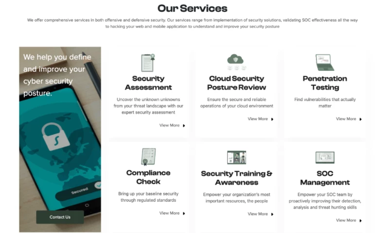 We offer comprehensive services in both offensive and defensive security. Our services range from implementation of security solutions, validating SOC effectiveness all the way to hacking your web and mobile application to understand and improve your security posture