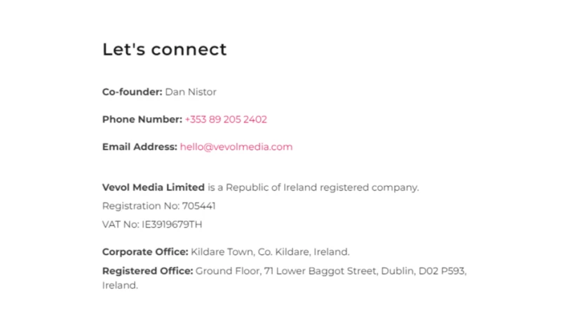 Ground Floor, 71 Lower Baggot Street, Ireland, Dublin, D02 P593, Irelandhttps://www.vevolmedia.com