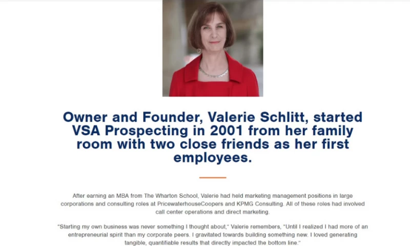 VSA has developed a phenomenal reputation for setting qualified appointments with hard to reach decision makers for their client's sales efforts. The firm has grown primarily through referrals and client retention. There is very low staff turnover, so there is a base of experience built over the years for VSA's clients. The dedication and work ethic of Valerie and the VSA staff is second to none. "Jeanne Sullivan's Review Sourced from Google