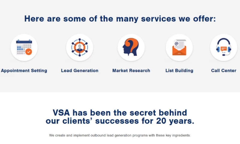 VSA steps in to fill this role. We use sophisticated outbound calling strategies to access hard-to-reach prospects and set qualified appointments, all while seamlessly representing ourselves as an extension of your sales team. We are experts at filling the top of your sales funnel with qualified leads.