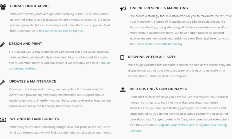 Craig has been designing and building website since he was in high school in 1996. He started Web by Craig at the start of 2008. He has a degree from McGill University in Psychology and volunteers as a first responder medic.