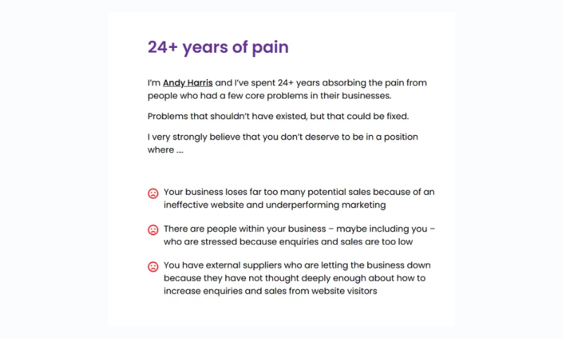 I first went to Andy for some advice about my website and was genuinely blown away by how much free, practical guidance he shared without charging a penny. His insight gave me instant clarity on what needed improving and why. I now continue to work with Andy for ongoing hints and tips to develop my website further and I confidently recommend him to anyone who wants more enquiries from their website. He proves his value first and that’s exactly why he’s so easy to trust. "USN P22 Trust's Review Sourced from Google