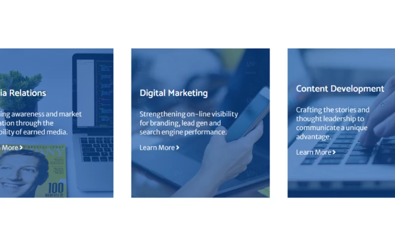 Built on a long track record of success in traditional PR and earned media (with the Rolodexes to prove it), we have integrated additional and relevant skills and services to ensure our clients’ messages stand out in today’s dynamic and noisy environment. With content as a foundation, we apply best practices in digital marketing, SEO/SEM, digital design and lead generation to provide fully integrated communications programs that support our clients’ business goals.