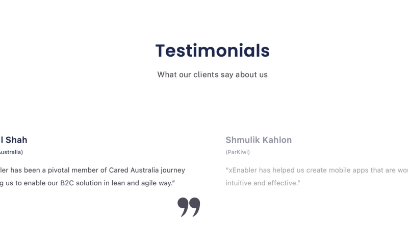 Cared has been working with xEnabler for several years to complement our in-house technical skills. Cared found xEnabler always up for a challenge, working collaboratively, bringing innovation in play, and being transparent and trustworthy. "Cared Australia's Review Sourced from Google