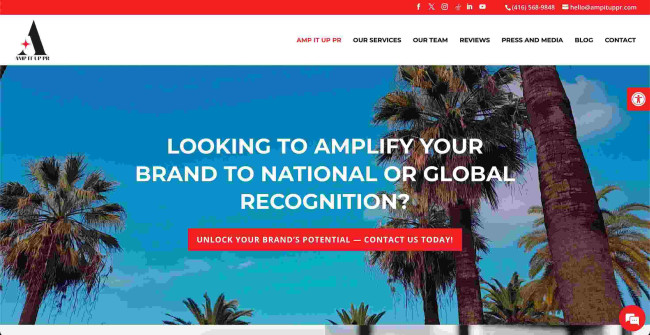 As a leading PR agency in Canada, AMP It Up PR offers media relations, crisis communication, content creation, executive communication, and image management. Its portfolio further extends to digital PR, brand reputation, influencer outreach, event planning, press release writing and distribution, and news media outreach. Recognized for its industry excellence, AMP It Up PR has earned prestigious accolades such as the Global Business Leadership Forum Awards, Canadian Business Awards for Best PR Agency in Eastern Canada, and the Global 100 Best Publicity Agency Award. The Canada-based public relations agency’s core objective is to help brands drive national and global visibility through tailored, results-driven PR strategies.