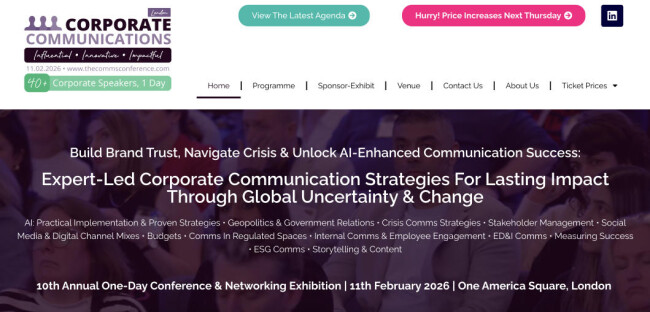 Move from crisis reaction to crisis leadership at the Future of Crisis Communications, the UK’s definitive annual gathering for comms pros navigating political volatility, cultural tension, and AI-driven risk.