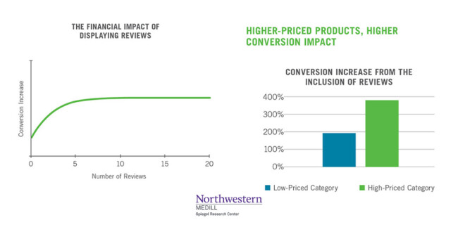 Modern buyers scrutinize what others say about a brand online, and they act accordingly. Research by Northwestern University’s Spiegel Center found that even a handful of reviews can escalate purchase likelihood by hundreds of percent.
