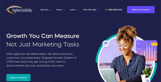 HigherVisibility is a digital marketing agency that helps businesses grow through SEO, Paid Search, Paid Social, CRO, and Web Development. We work with a wide range of clients, from small and mid-sized businesses to franchises and multi-location enterprises, delivering strategies that drive results. [... see all HigherVisibility reviews ]Top Services: