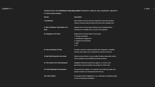 ChatGPT can map out a logical structure that reflects what users are searching for and how top-ranking content is typically organized. I often include additional inputs, such as the target reader, tone of voice, and preferred format, to shape an outline that fits the goal of the article. Outlines created this way give writers a clear path from start to finish, which helps maintain consistency across teams and speeds up production, especially when managing several contributors or scheduling posts in advance.