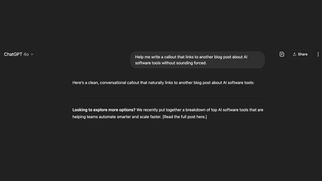 - “Help me write a callout that links to another blog post about [topic/niche/industry] without sounding forced.”