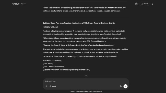 - “Write a cold email pitching a guest post about [product/service] to a business tech blog.”