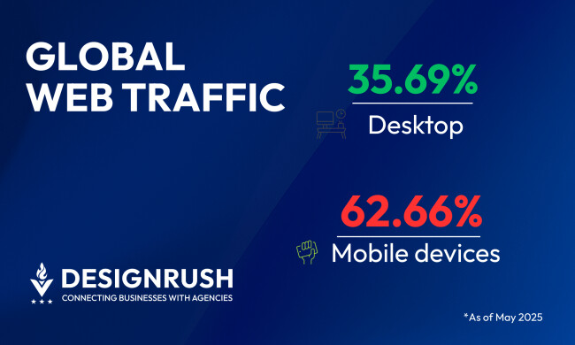 - Mobile phones now account for nearly two-thirds of all global web traffic (62.66%), far surpassing desktop (35.69%) and tablet (1.65%).