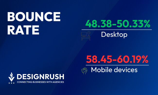 Mobile bounce rates range between 58.45% and 60.19%, compared to 48.38% to 50.33% on desktop. That’s a consistent 8–12% point gap, which can translate into thousands of lost conversions for high-traffic sites.