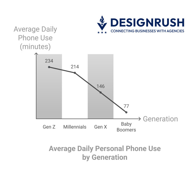Gen Z is the most mobile-tethered generation in today’s workforce. According to RSS.com’s 2025 findings, they spend an average of 234 minutes per workday on personal phone use.