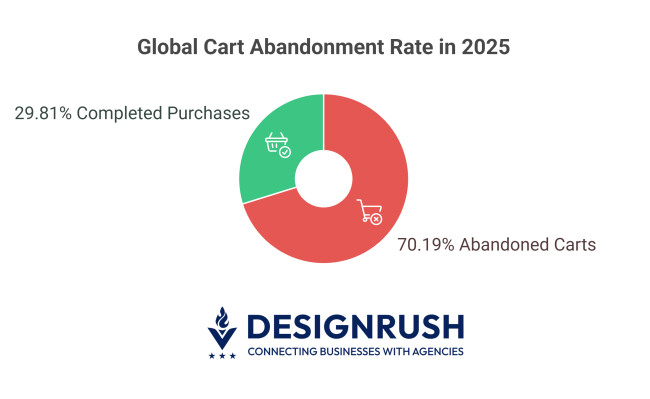 - The global cart abandonment rate stands at 70.19%, with abandonment reaching up to 98% in the travel sector.