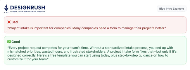 - Open with strong introductions that frame the reader’s problem.