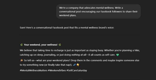 Sample prompts for Facebook posts: