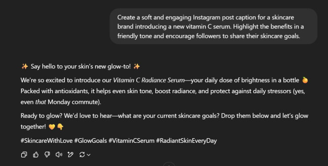 Creating scroll-stopping content is a daily challenge for brands and creators, and it's where ChatGPT shines because it can produce copy that matches your brand voice. It analyzes your input and delivers content that aligns with your tone, messaging, and platform requirements.