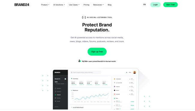 Brand24 is an AI-powered social listening and media monitoring tool that helps you track brand mentions across social media and the wider web (news, blogs, forums, videos, reviews, and more).