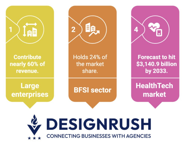 - Large enterprises contribute nearly 60% of offshore software development revenue (Cognitive Market Research).