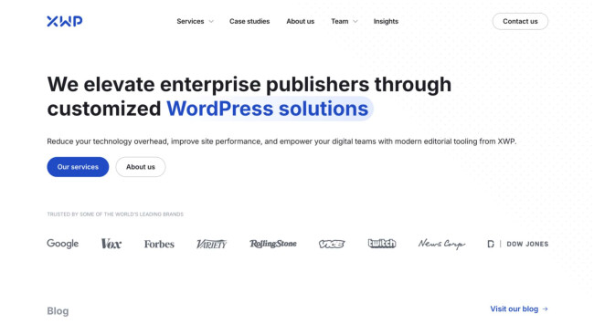 XWP aims to help enterprises and pioneers move to WordPress through web design, Progressive Web App (PWA) development, custom theme and plugin development, and CMS migration. Its services also include product strategy and development and managed maintenance and support. In addition to empowering its clients’ digital transformation, XWP’s team has led WordPress Core releases for several years, attesting to its expertise and invaluable role in WordPress development.