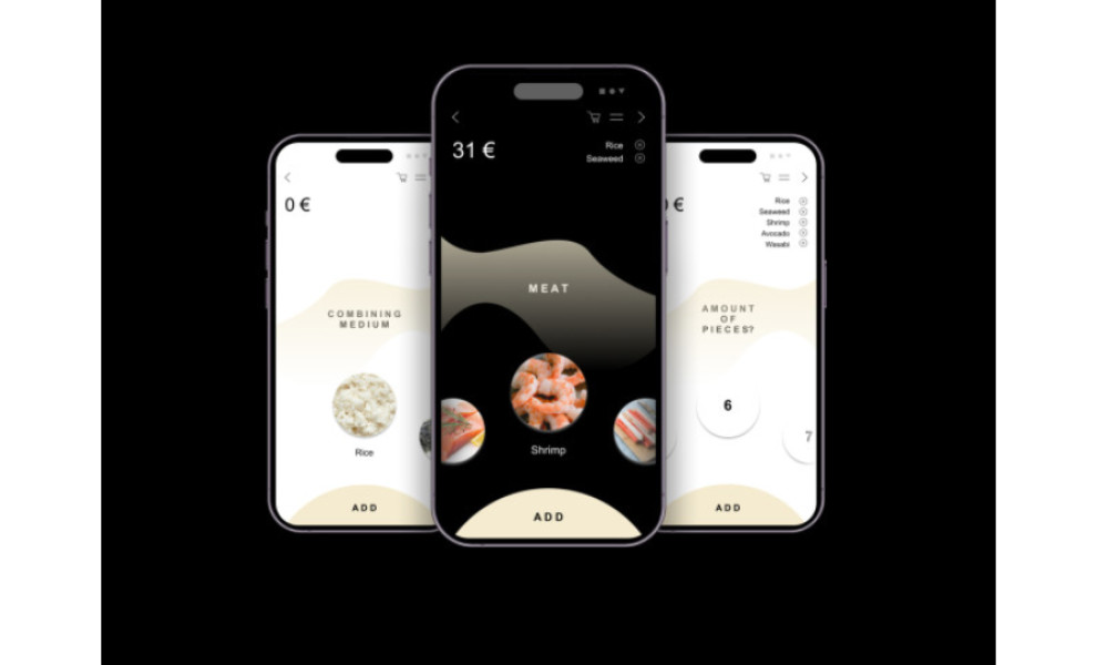 As users navigate, they are met with sleek black-and-white visuals and intuitive swiping for order adjustments. The design astutely places pricing details in the upper half, accentuating them with a larger font. It ensures users effortlessly discern costs amidst the app's elegant interface.