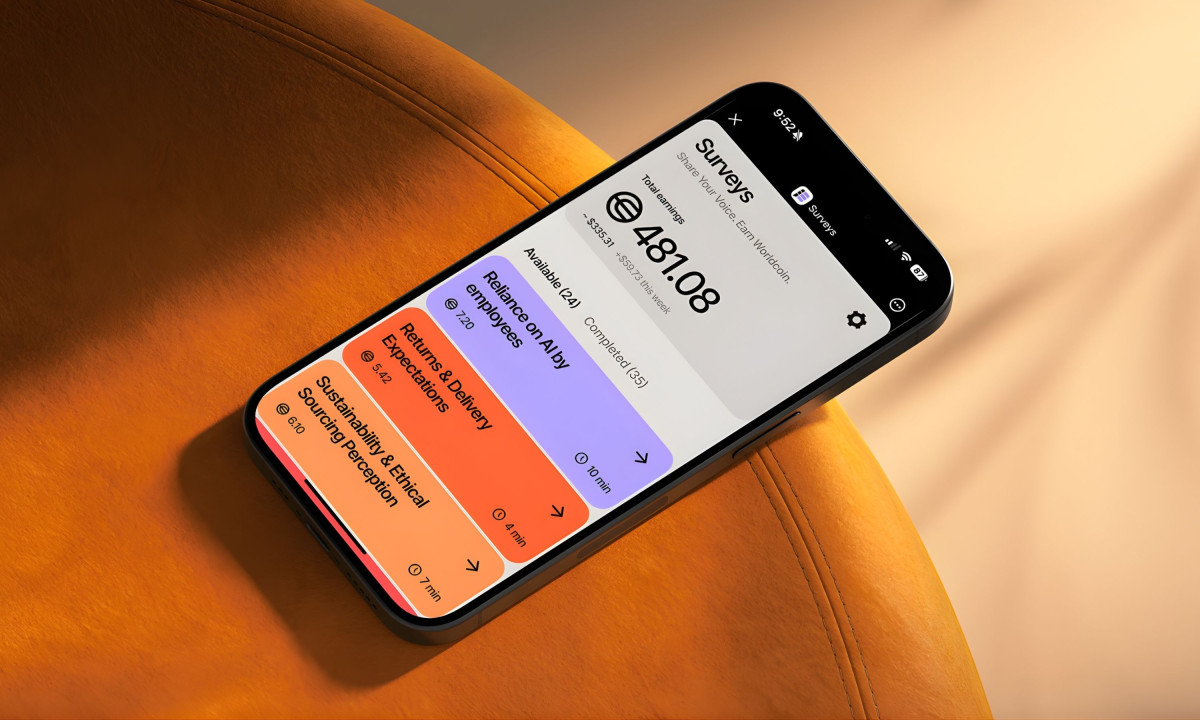 Functionality drives the user experience for individuals. Verified humans can navigate a streamlined list of available tasks, completing surveys in minutes to collect Worldcoin directly into their digital wallets.