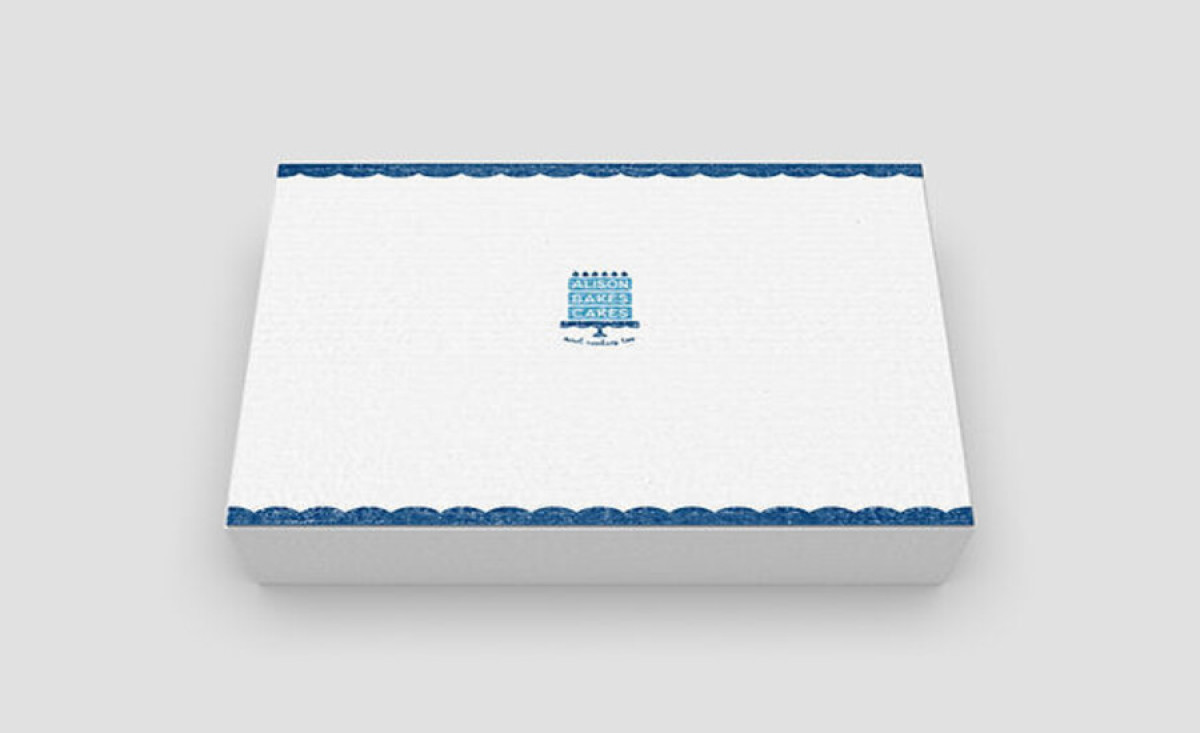 LINK & LAYER's logo design for Alison Bakes Cakes features a three-tier cake with the brand name. The serene blue colors add a calming touch and give off an approachable impression for potential clients.