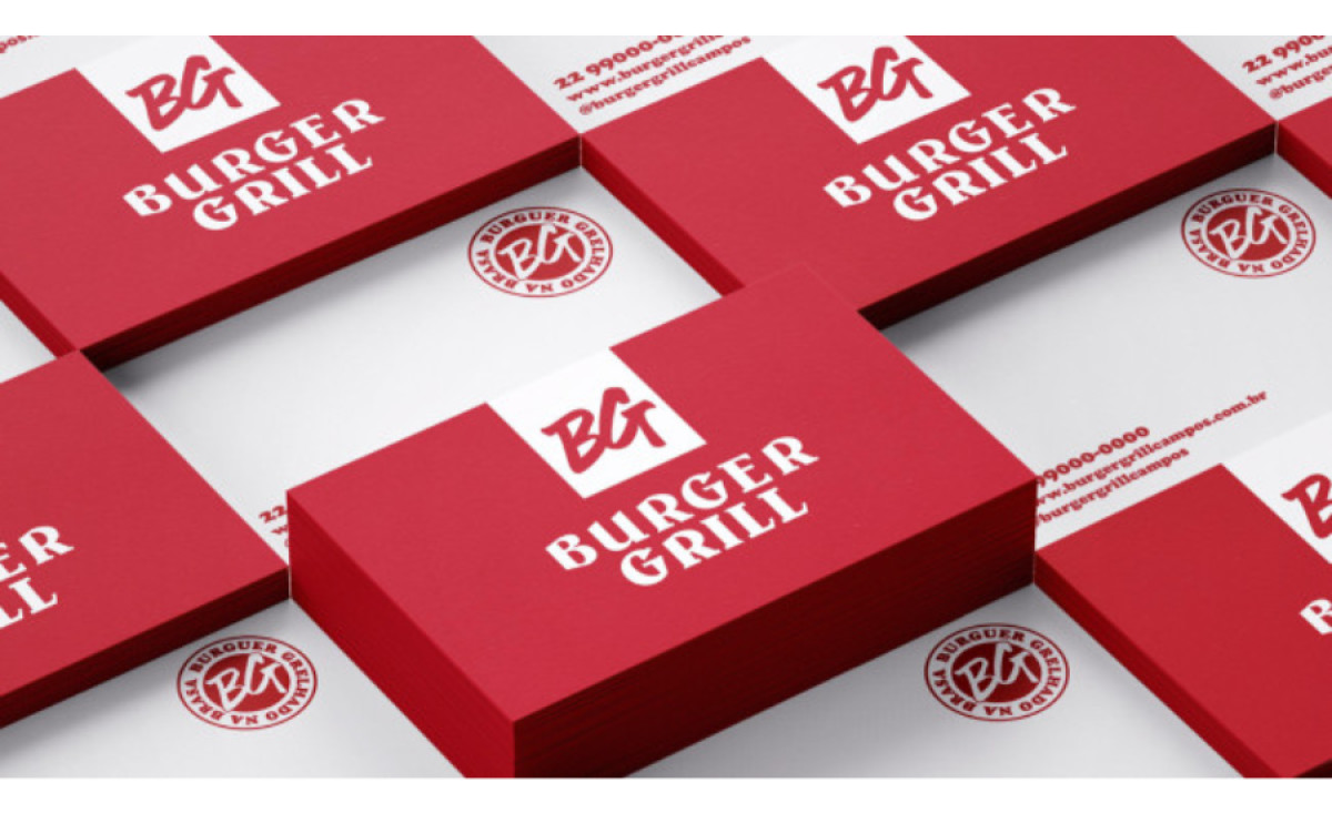 The logo design includes simple attention-grabbing red initials on a square white background. The logo’s color palette combines red and white, maintaining consistency across digital and offline marketing materials. It also emphasizes the level of standards and code of conduct behind Burger Grill. The logo design includes simple attention-grabbing red initials on a square white background.