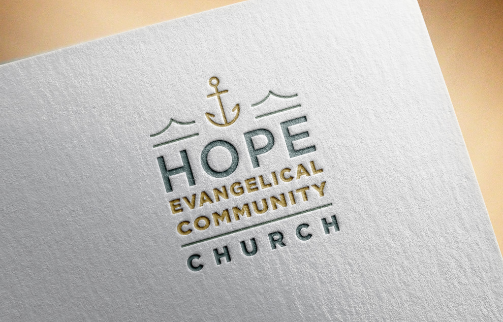 The Hope Evangelical Community Church logo design features robust uppercase letters for immediate recognition. The designer, Jenna Lyn Dawson Garcia, integrated a cross and anchor symbols that reflect the core values of faith and hope.