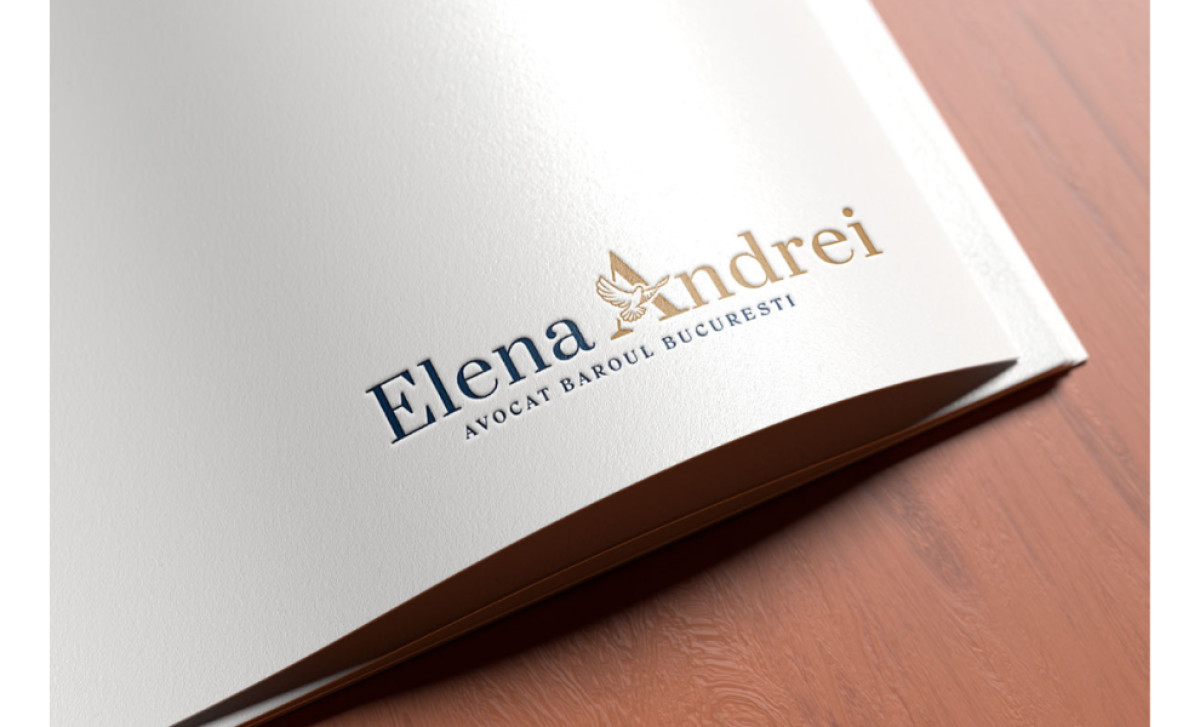 The gold detailing further enhances the design's premium appeal, reflecting the high standards of service Elena Andrei offers. This versatile and timeless palette elevates the logo's aesthetic and solidifies its association with excellence and justice, creating a solid and consistent visual identity across all branding materials.