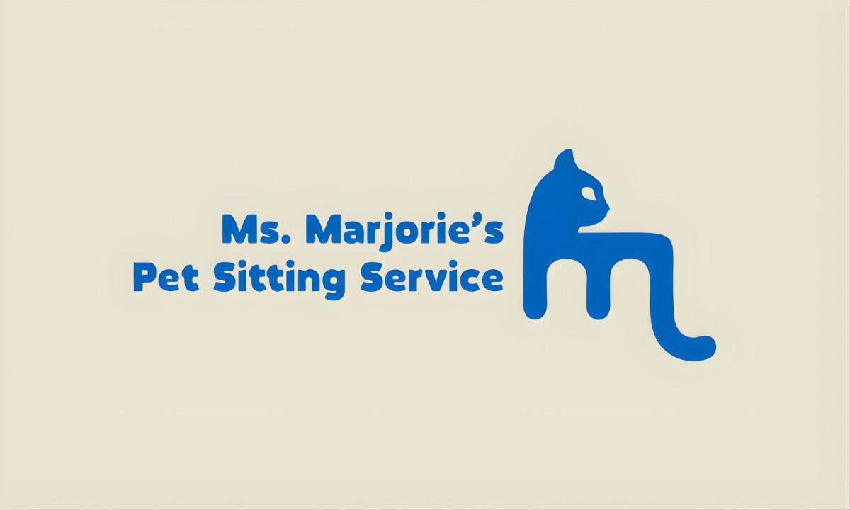Ms. Marjorie’s Pet Sitting Service succeeds by deconstructing the concept of care into a clean, modern mark that emphasizes trust and long-term reliability.
