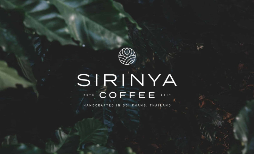SIRINYA COFFEE's logo design, created by Thuro Design, combines minimalism with unique symbolism, encapsulating transparency and simplicity in this brand's direct coffee process. The multilayered icon conveys a rich narrative through elegant composition, featuring two hills on either side, representing the location of the company's farm nestled in the mountains of Thailand.