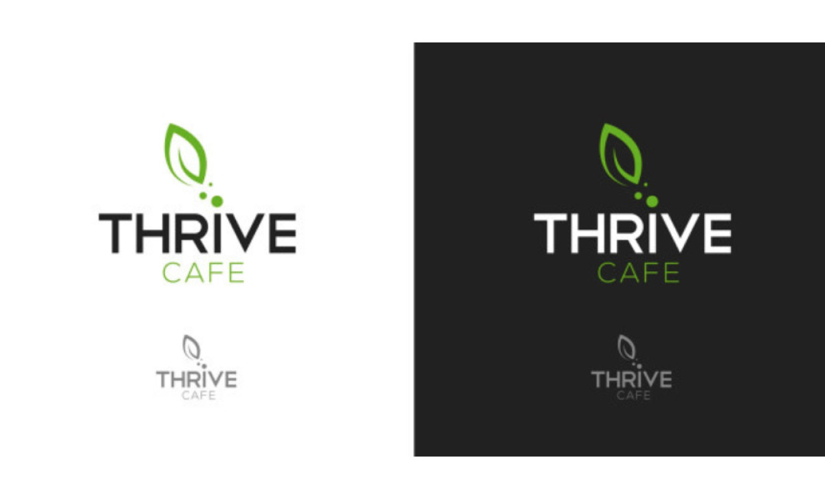 Thrive Café's nature-inspired logo, created by Kevin J. Hawley, embodies calmness and versatility. It is easily adaptable to different backgrounds, whether light or dark colored, making it convenient for use on various marketing materials.