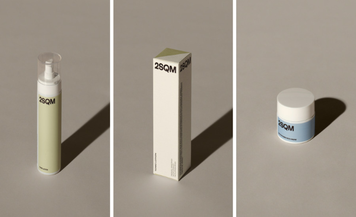 Eremo Studio’s packaging design for 2SQM COSMETICS exemplifies formal simplicity. Each element echoes the brand's commitment to quality and care.