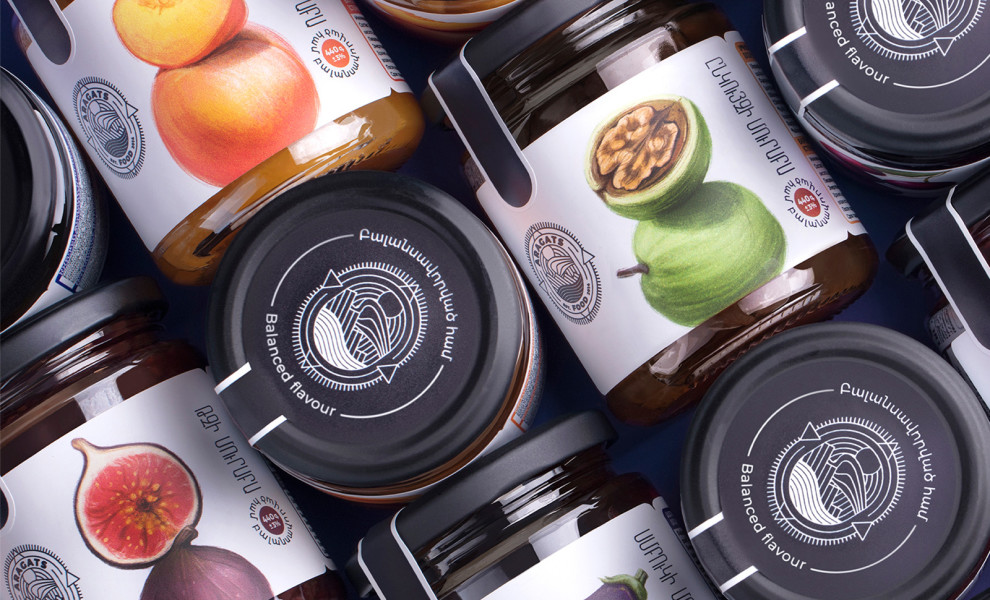 This concept of excellence and equilibrium was the foundation of Aragats preserved food. Each illustration looks as if it was “picked” right from one of Caravaggio's paintings. Rich and juicy colors especially stick out when placed on the white label; each brush stroke and realistic shadow guarantees customers’ attention.