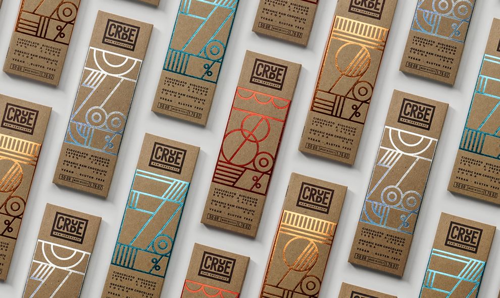 Crude Raw Chocolate embraces minimalism, but not in the predictable, stripped-down way. Designed by Happycentro, the packaging effortlessly balances raw and refined — pairing untreated, textured kraft board with shimmering metallic foil in a way that feels both natural and high-end.