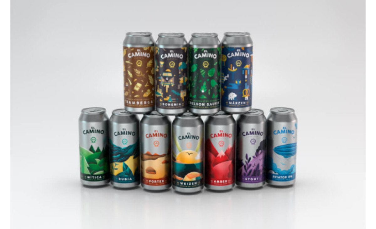 When modernizing the El Camino brand, ALVAROGDESIGN turned to colorful minimalism to provide each beer can with a solid graphic and visual line that effortlessly stands out from the huge craft beer competition in northern Spain.