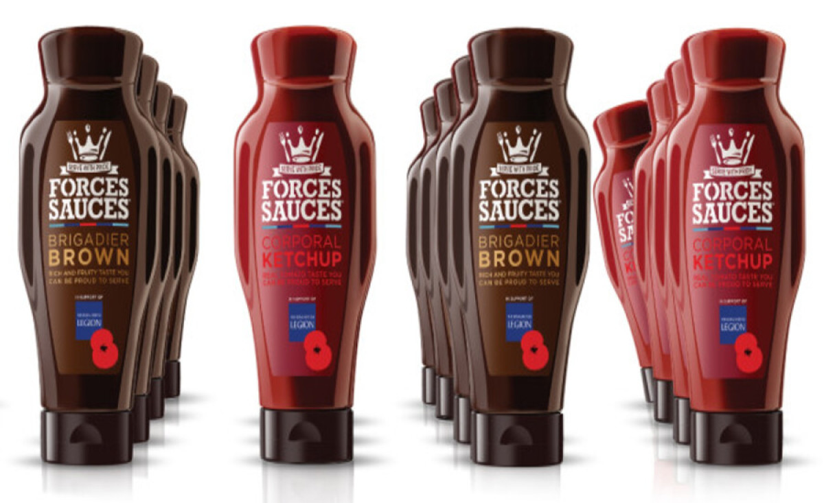 The unique shape resembles a trophy, possibly indicating an award for the veterans’ service and suffering for the British community. The strong, aggressive colors enhance the imagery of pride and gratitude. It’s a sauce for them.
