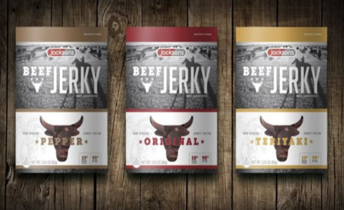 Dennis Budell's work for Jacksons Jerky is next on our list of the best beef jerky packaging designs. What makes this commendable is its subtle product promotion and images that tell a story.