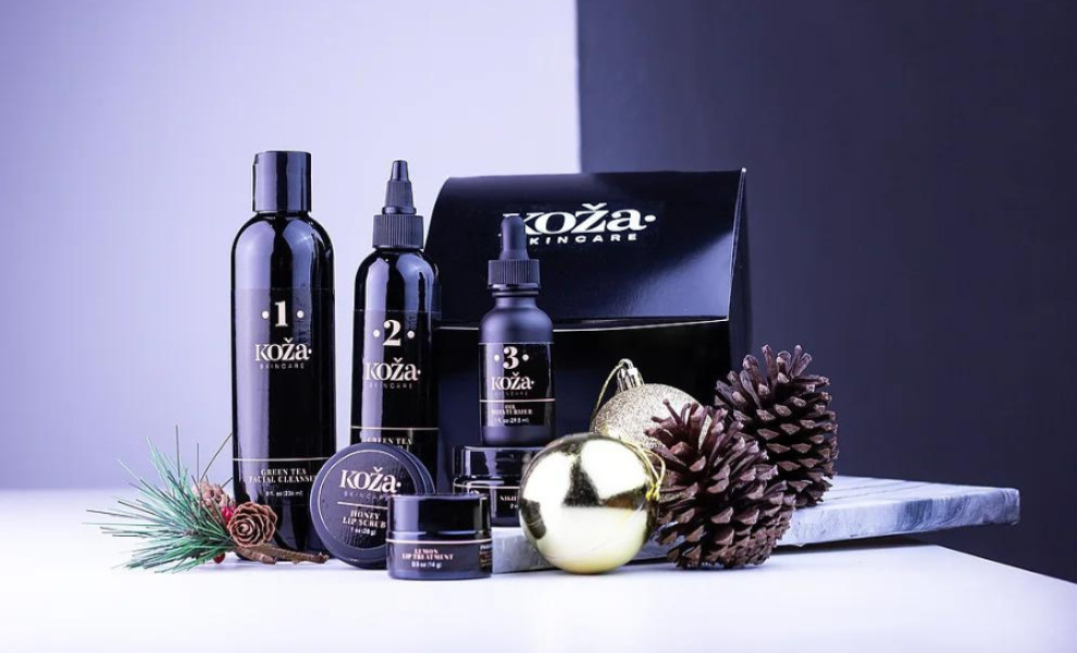 The dark, luxurious bottles further enhance the sophistication of the packaging. Black is a timeless color often associated with premium quality, making it an ideal choice for conveying Koza Skincare's upscale nature. In addition, dark bottles create a striking contrast with the rose gold lettering, enhancing the design's dynamic.