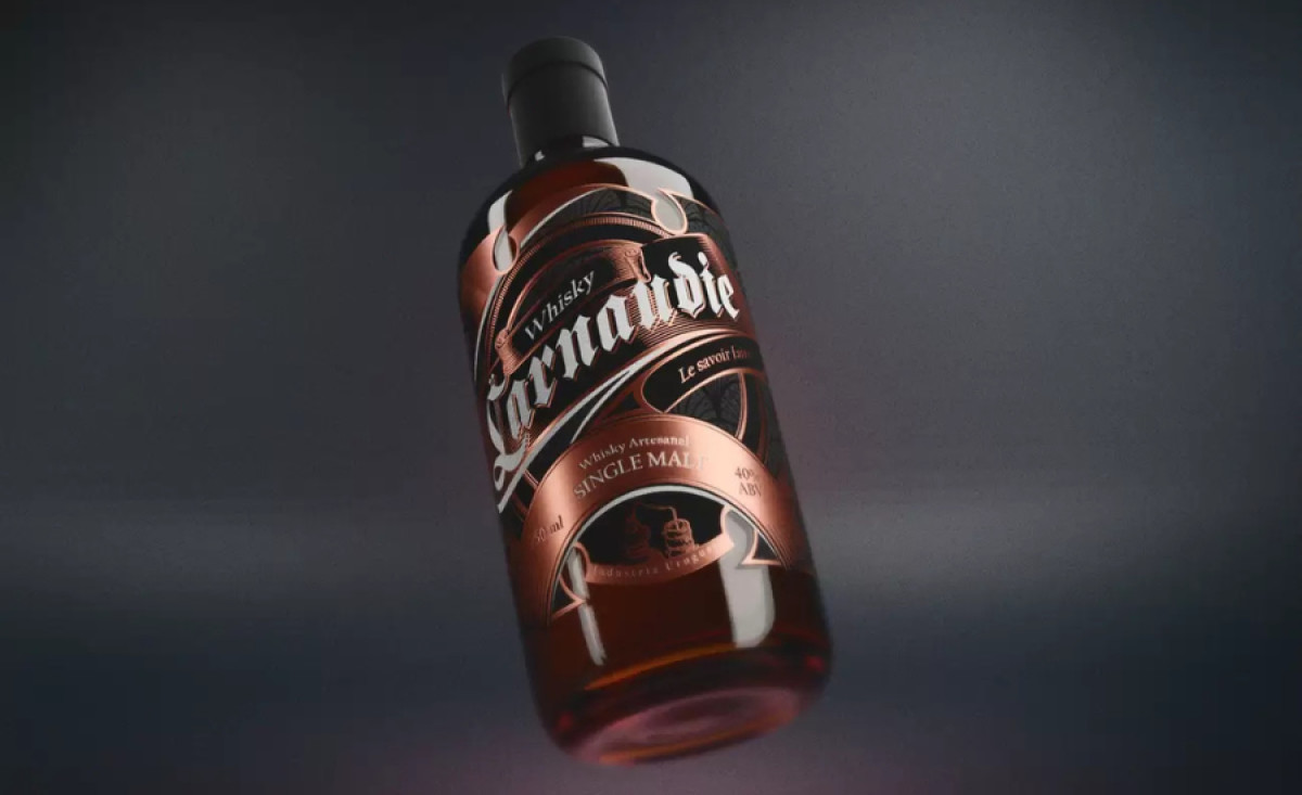 Gothic typography, often associated with exclusivity and grandeur, is a fitting choice for a premium whiskey like Larnaudie. By prominently featuring the brand name in this bold typeface, AloHaus creates a design that resonates with consumers who equate elaborate typography with quality and heritage — particularly whiskey aficionados who appreciate craftsmanship and history in their spirits.