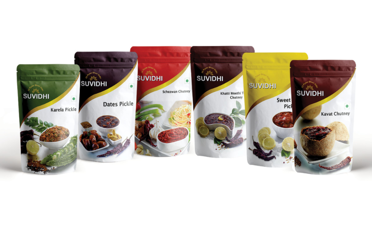 Suvidhi's whole brand identity is deeply rooted in using traditional Indian recipes and high-quality, natural ingredients. Le Dessein Studio, therefore, designed its complete packaging system to communicate the authenticity and quality that goes behind every Suvidhi pouch, bottle, and jar, manifested in a few ways: